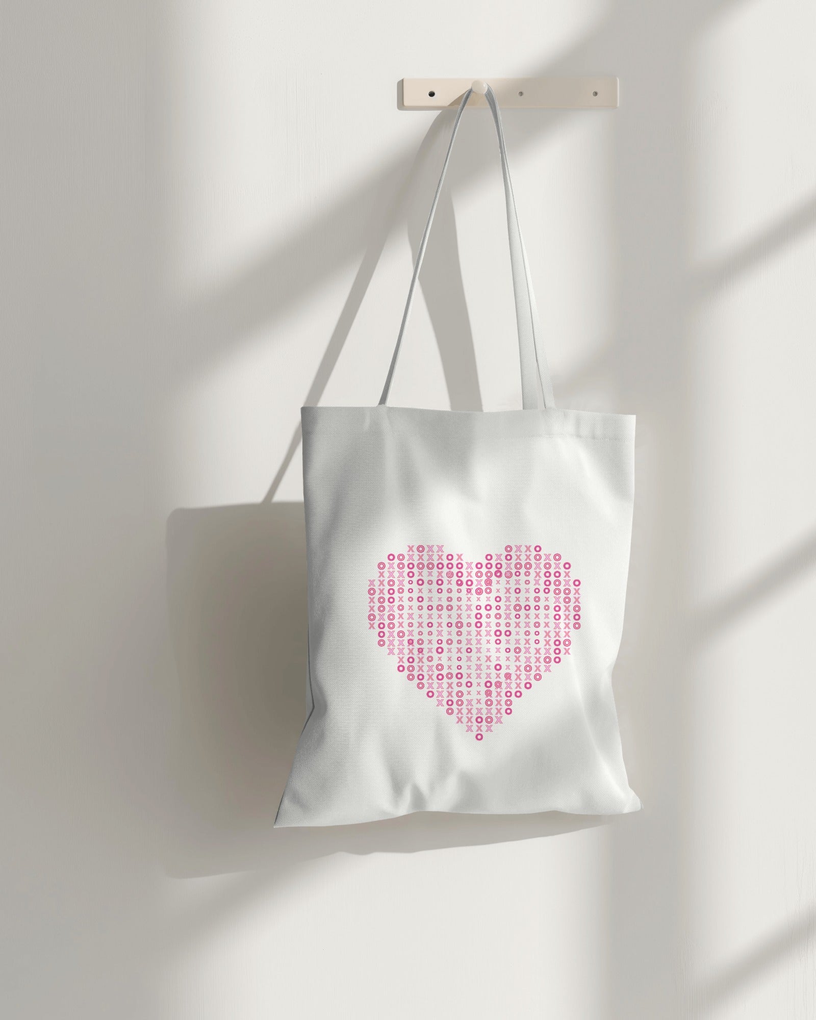 Lleva tu amor a donde quiera que vayas con nuestra bolsa de lona Heart XO. Con un encantador diseño de corazón hecho con patrones de "X" y "O" rosas, esta bolsa de lona es perfecta para agregar un toque divertido a tus artículos esenciales diarios. Esta bolsa, hecha de lona duradera y ecológica, es lo suficientemente espaciosa para guardar libros, comestibles o artículos de uso diario, mientras que las cómodas correas hacen que sea fácil de llevar todo el día. Su diseño minimalista con un toque de color la convierte en un accesorio versátil para cualquier atuendo, ideal para ir de compras, a la escuela o para salidas informales.