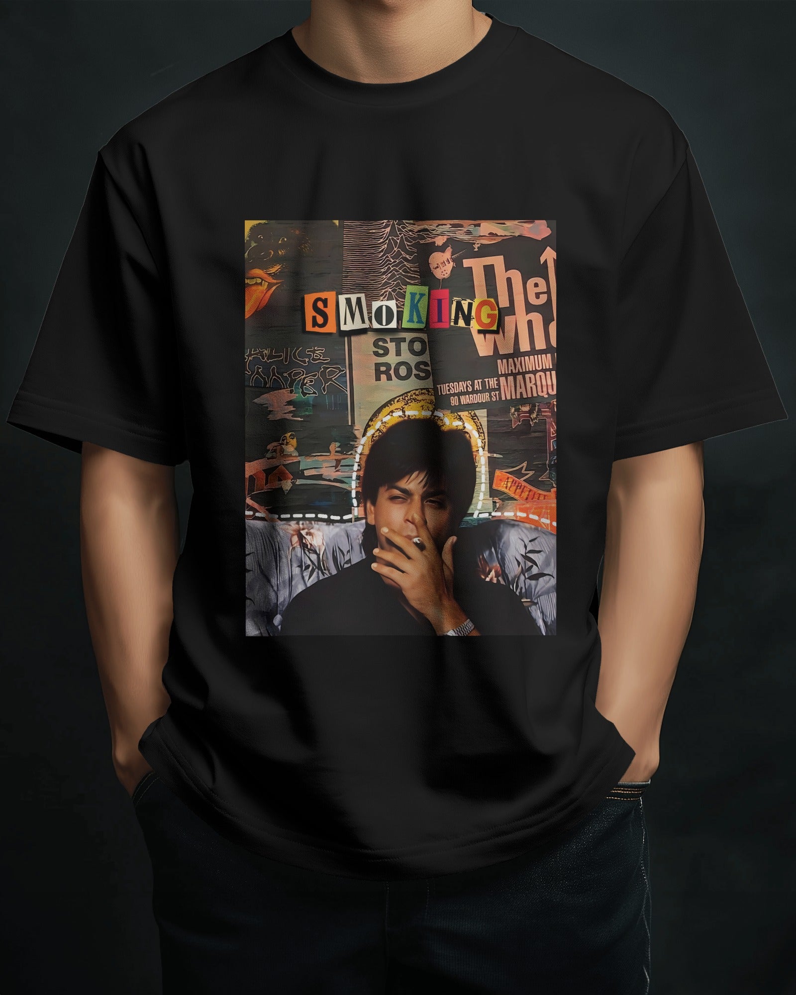 A tribute to the King of Bollywood, captured in a raw smoking still – printed on premium cotton for everyday wear.