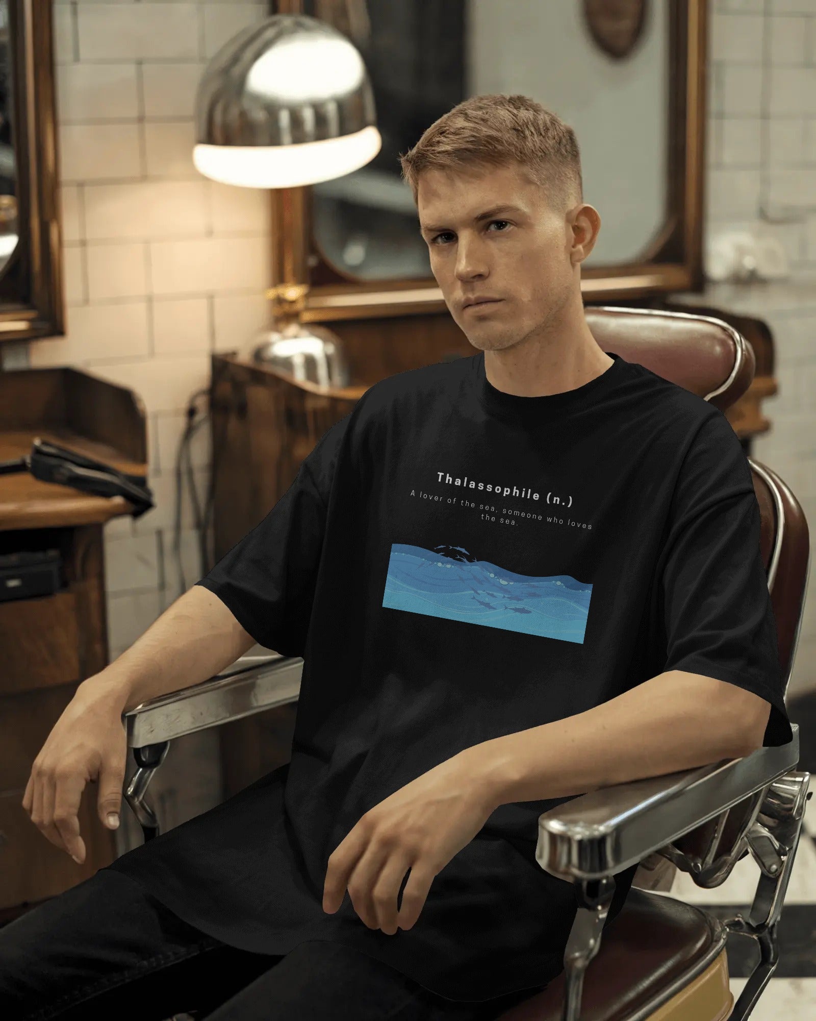 Eye-catching front print featuring the word “Thalassophile” in a minimalist font.